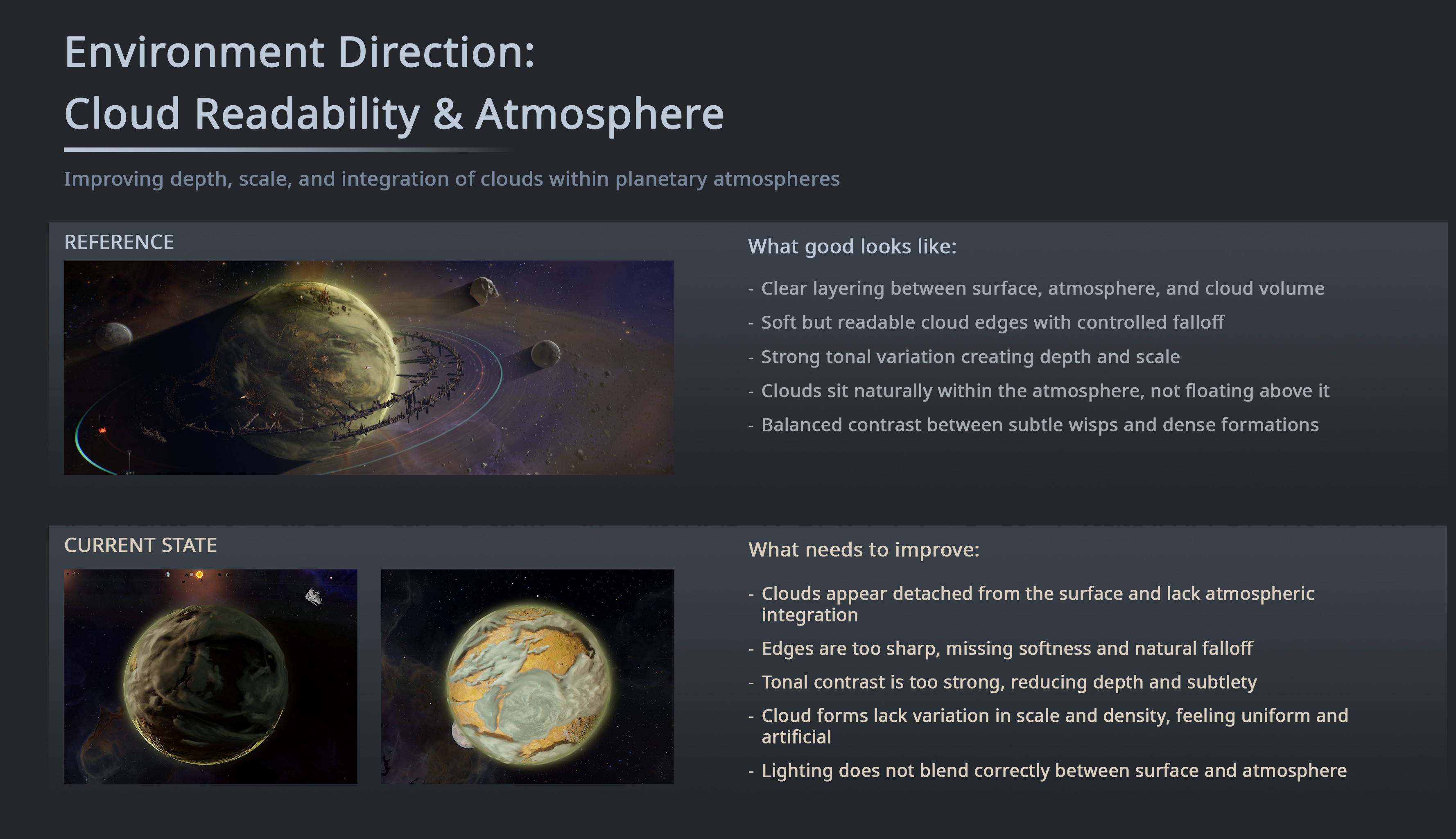 Clear communication is critical to successful art direction. Rather than relying solely on documentation, I work closely with teams through reviews, discussions, and iterative feedback. Visual notes, paintovers, and direct collaboration help ensure the direction remains clear while allowing artists to contribute their own expertise.